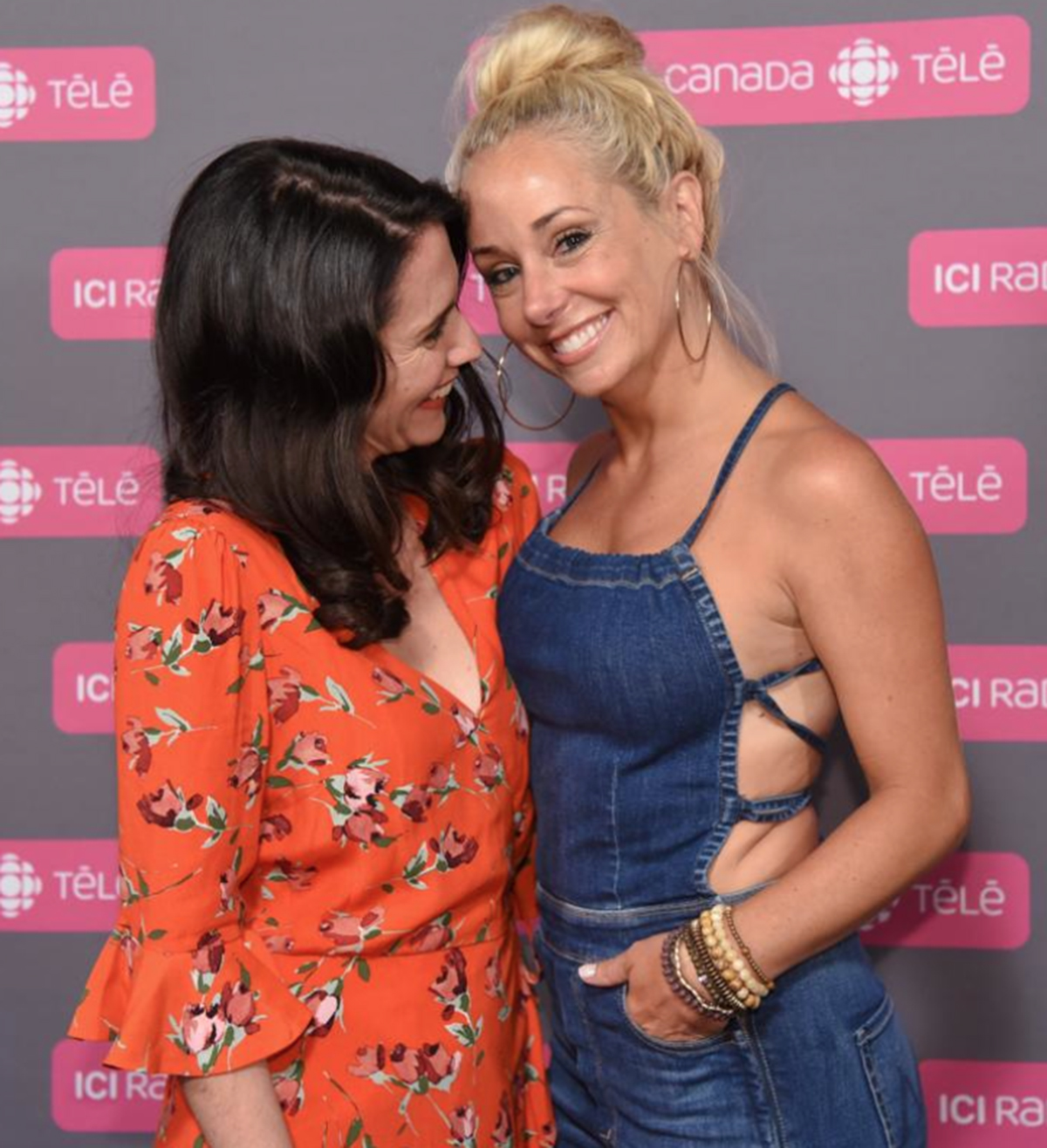 La voici en compagnie de Mélissa Désormeaux-Poulin, l'actrice vedette de sa télésérie Ruptures sur les ondes de Radio-Canada: